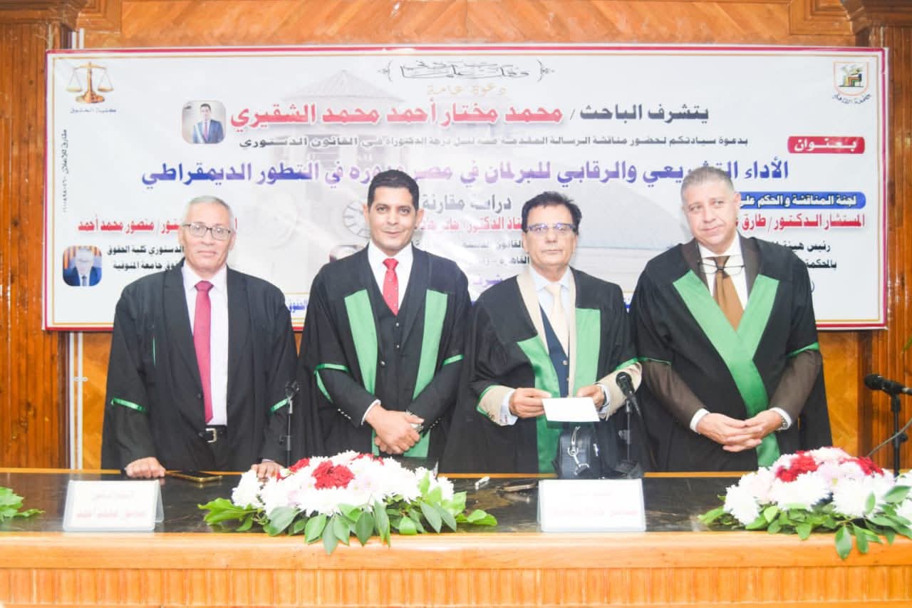 بمناسبة حصوله عى الدكتوراه فى القانون يتقدم المستشار محمد الشقيرى بالشكر والتقدير للأساتذة والأقارب والأصدقاء ممن شاركوا فرحته على حصوله على الدكتوراه