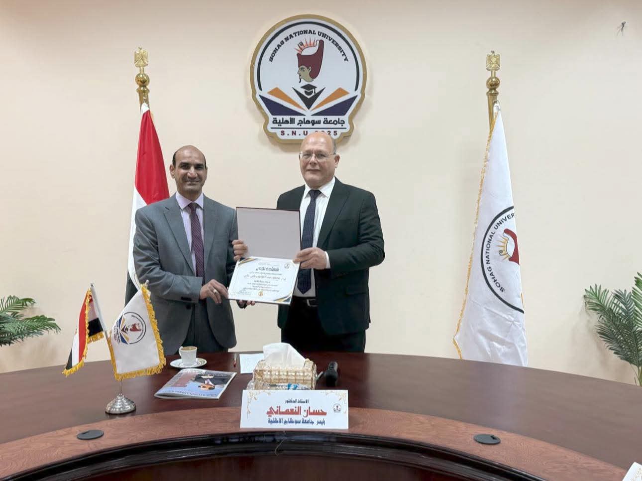 النعماني يُكرم أستاذين بكلية العلوم بجامعة سوهاج الأهلية لصدارتهما في المشهد البحثي